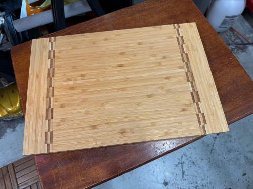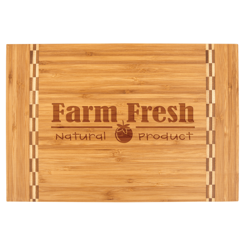 15 x 10 1/4 " Rectangle Bamboo Cutting Board with Butcher Block Ends. Bamboo includes natural variations in color in wood grain and engraving, adding to the uniqueness of each piece. Your custom design will have a richly toned, deeper hue than the cutting board itself when engraved.